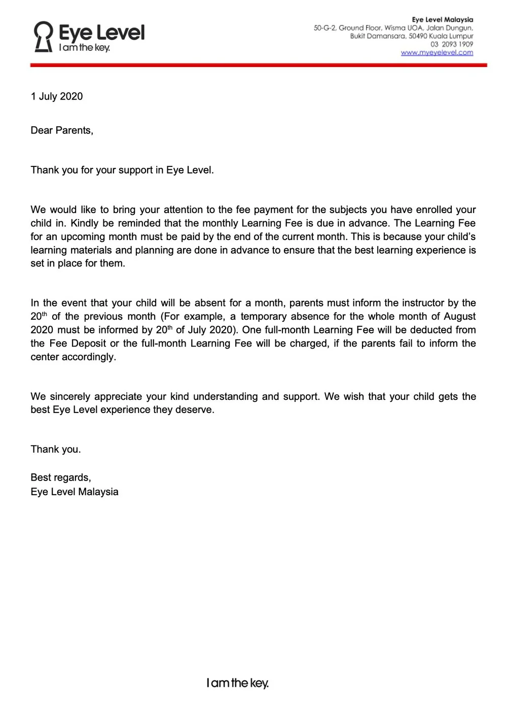 Fee Memo Eye Level Math English