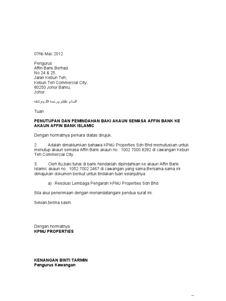 Surat Rasmi Pertukaran Nama feorinam. 14 contoh surat rasmi. Contoh surat tutup akaun bank syarikat.